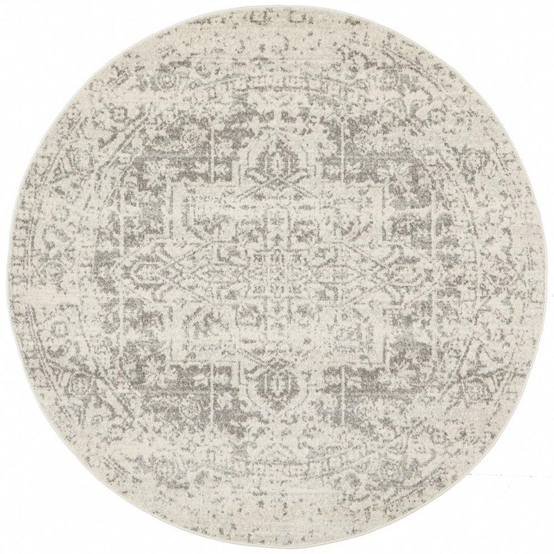 Evoke Round Rug In White & Silver