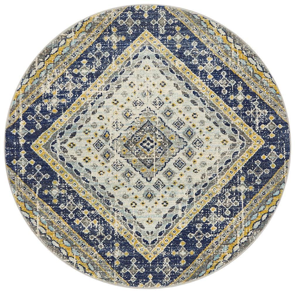 Babylon Diamond in Navy : Round Rug