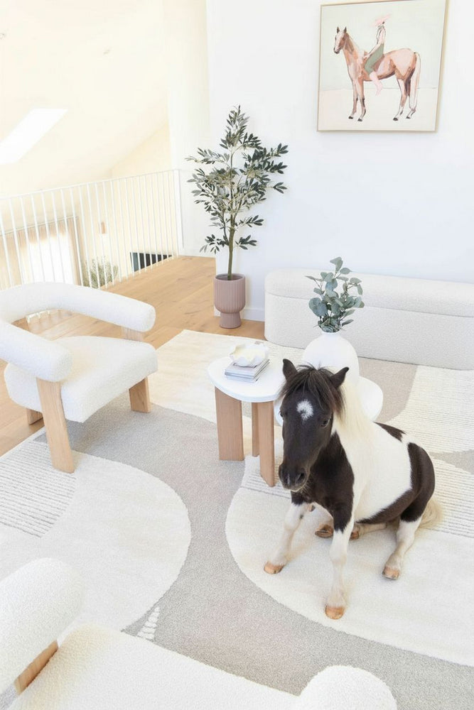 Elegant and contemporary, the Coco Vintage Beige Rug blends soft neutral tones with a confident geometric design. Featuring interlocking arcs and linear patterns in contrasting shades of light beige and cream, it strikes the perfect balance between subtlety and visual interest. Crafted in Belgium from a plush polypropylene pile, this rug offers both durability and luxurious softness underfoot. Ideal for modern living rooms, lounges, or bedrooms, it brings warmth, sophistication, and texture to any interior.