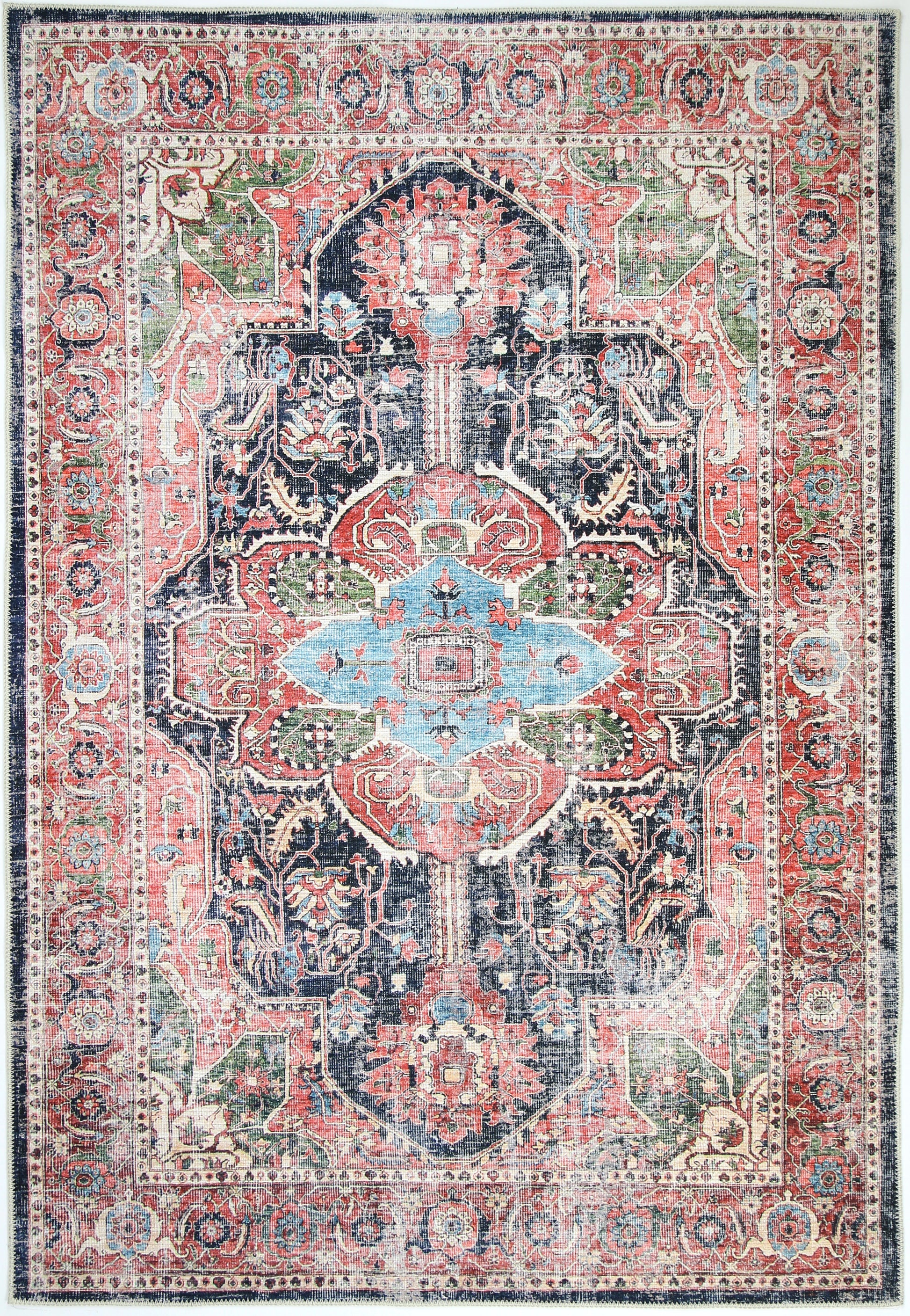 Crafted in Turkey from a blend of recycled cotton and polyester, the Vintage Crown Washable Rug Collection brings timeless style and contemporary convenience to your home. Made to replicate the intricate details of antique oriental rugs, each piece boasts a beautifully distressed finish that adds instant character to any space. Power-loomed construction ensures long-lasting beauty and performance and machine-washability guarantees for effortless cleaning. These washable rugs are pet-friendly and kid-friendly!