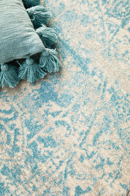 Evoke In White & Blue : Round Rug