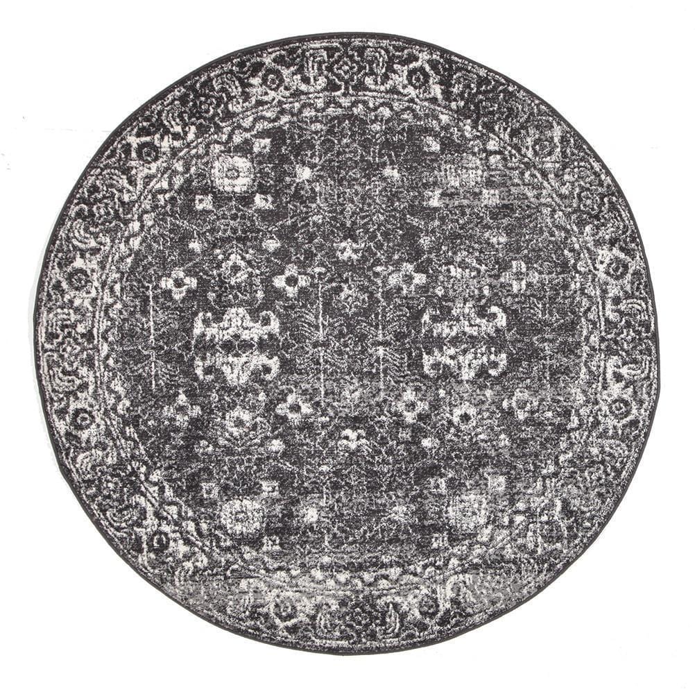 Evoke Meshky Round Rug In Charcoal