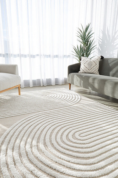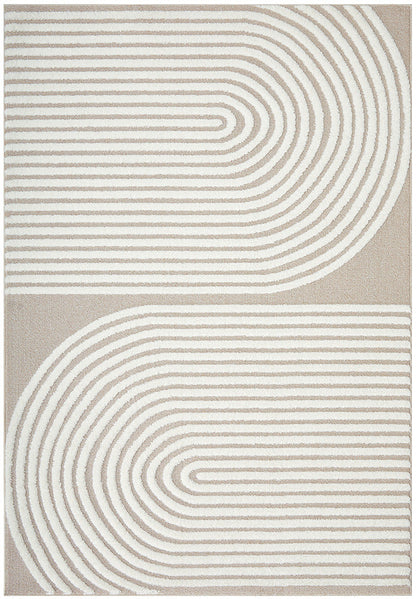 The Lotus Abbey rug presents a modern masterpiece, where design and function converge to create a visually stunning statement. Featuring curved arches articulated through precise high and low pile details, this rug infuses any room with a touch of sophistication. Its subtle interplay of texture enhances the rug's elegant lines, making it a perfect complement to neutral, modern, or contemporary decor. Available in beige, white, and a harmonious mix of both, the Lotus Abbey rug offers versatility and style, becoming a focal point that gracefully anchors any interior space.