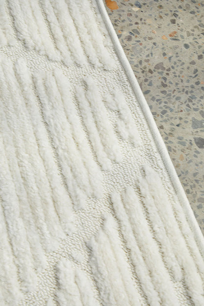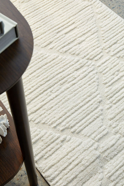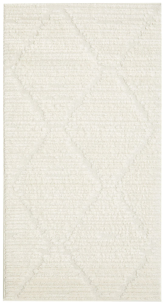 The Marigold Aria White rug is a contemporary masterpiece, embodying modern elegance and sophistication. With its soft pile and soothing off-white colour, it adds a touch of refinement to any space. The rug's unique textured effect, created by its high-low pile, forms a captivating diamond checker pattern. This intricate design element adds depth and visual interest, making the Marigold Aria rug a true statement piece. Perfect for entryways and hallways, this runner creates a serene and stylish ambiance, inviting you to relax and indulge in its understated beauty.