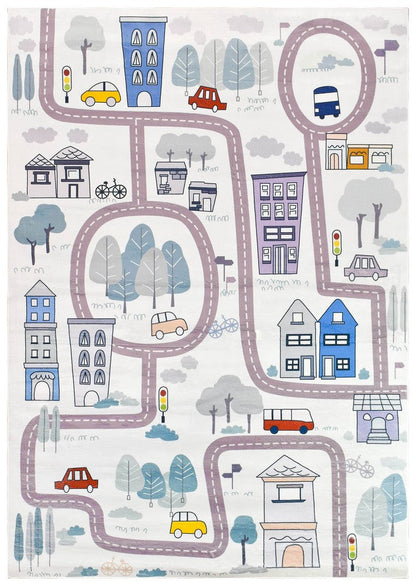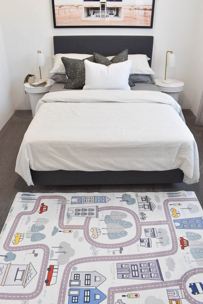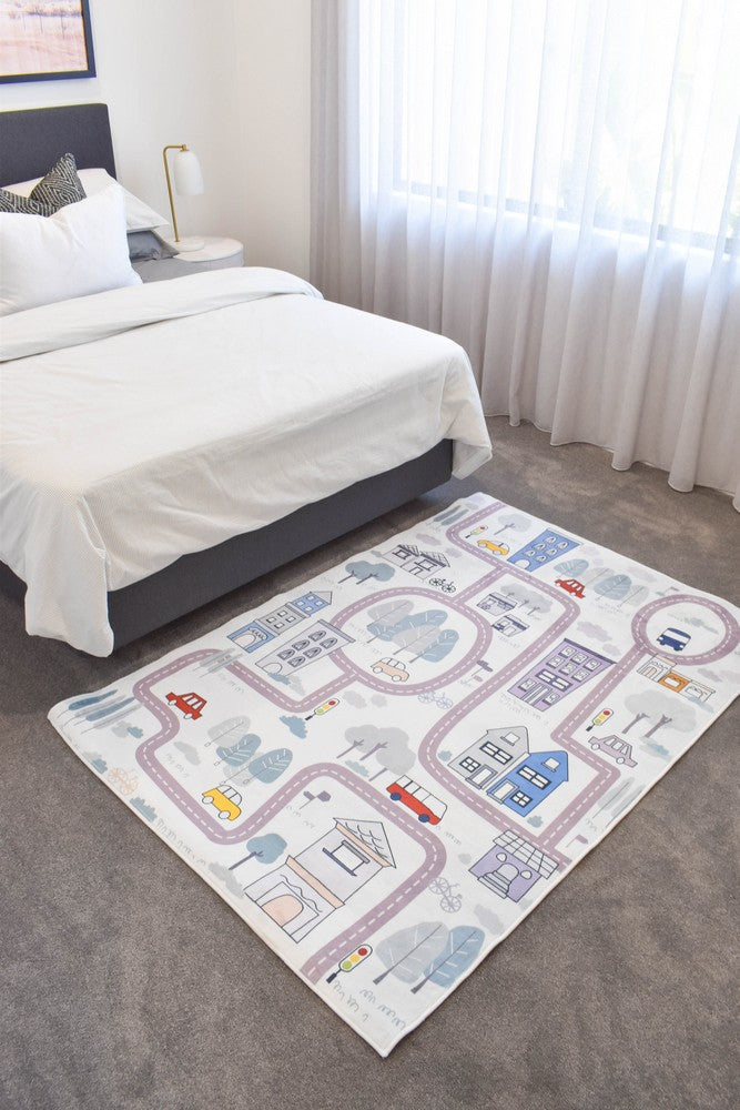Road Map Cream Kids Mat Machine Washable Kids Mat